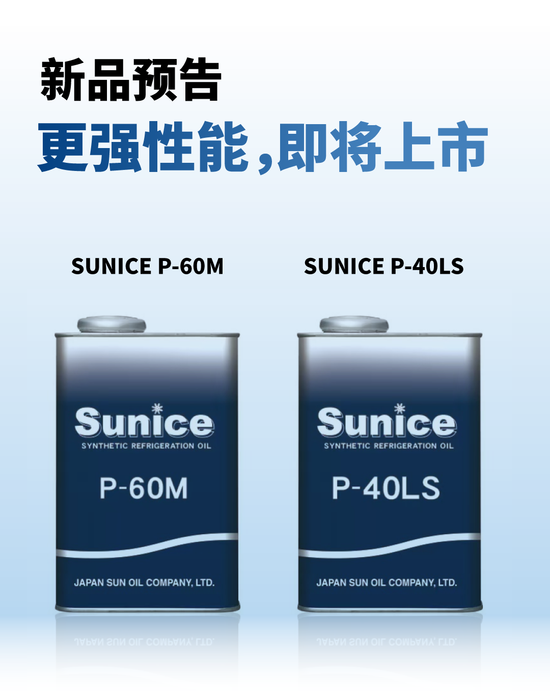 为了更好地满足行业发展需求,我们即将推出新一代 PAG 冷冻机油——「SUNICE P-60M」与「SUNICE P-40LS」。