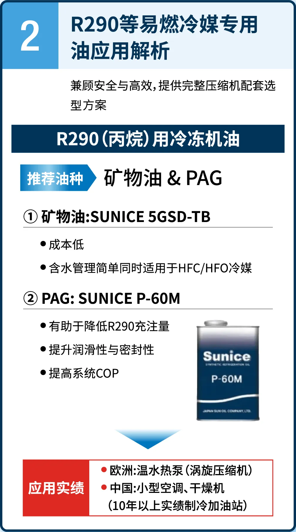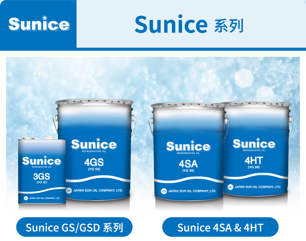 SUNISO品牌自1927年进入冷冻润滑领域以来,一直专注于为压缩机提供稳定支持。涵盖HCFC、天然工质(如R717)等不同应用需求的产品,助力设备运行安全与效率提升。