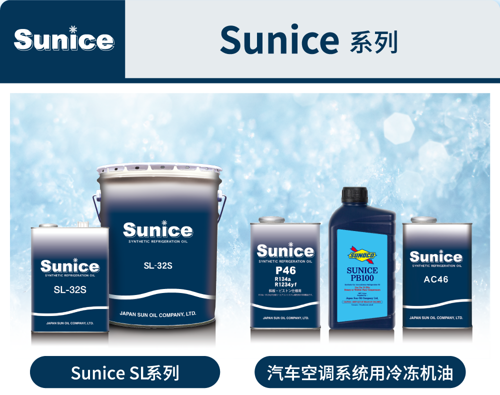 SUNISO品牌自1927年进入冷冻润滑领域以来,一直专注于为压缩机提供稳定支持。涵盖HCFC、天然工质(如R717)等不同应用需求的产品,助力设备运行安全与效率提升。